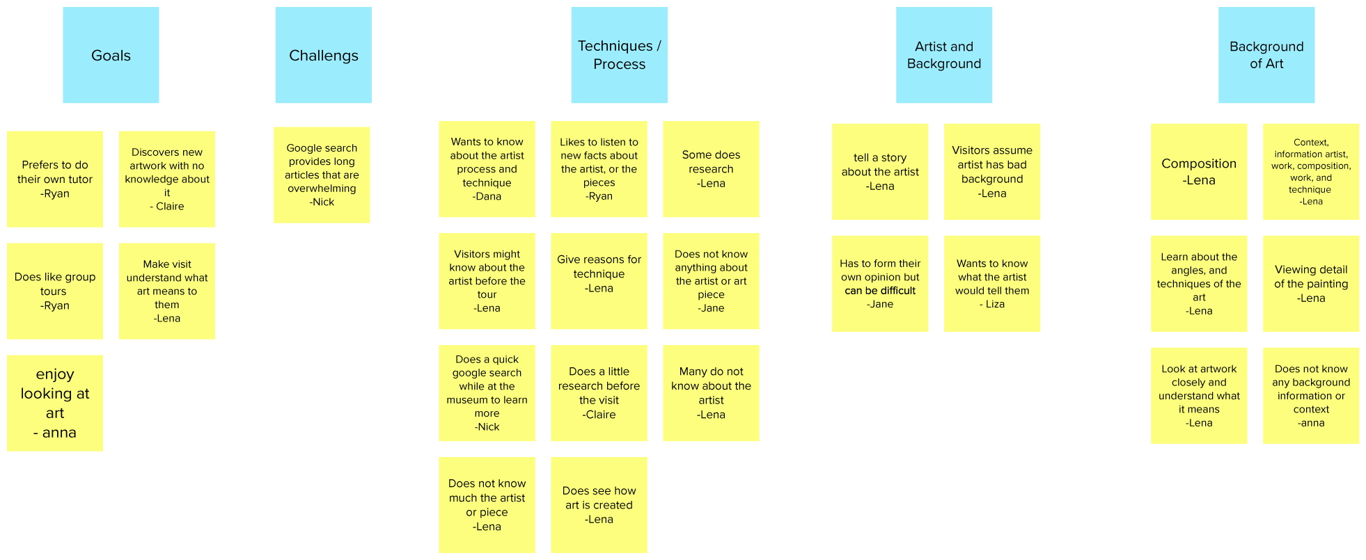 Based on existing data from quotes and a 1:1 interview with a tutor guide, I learned why visitors go to the art museum and how they receive information about a painting, installation, sculpture, or the artist.