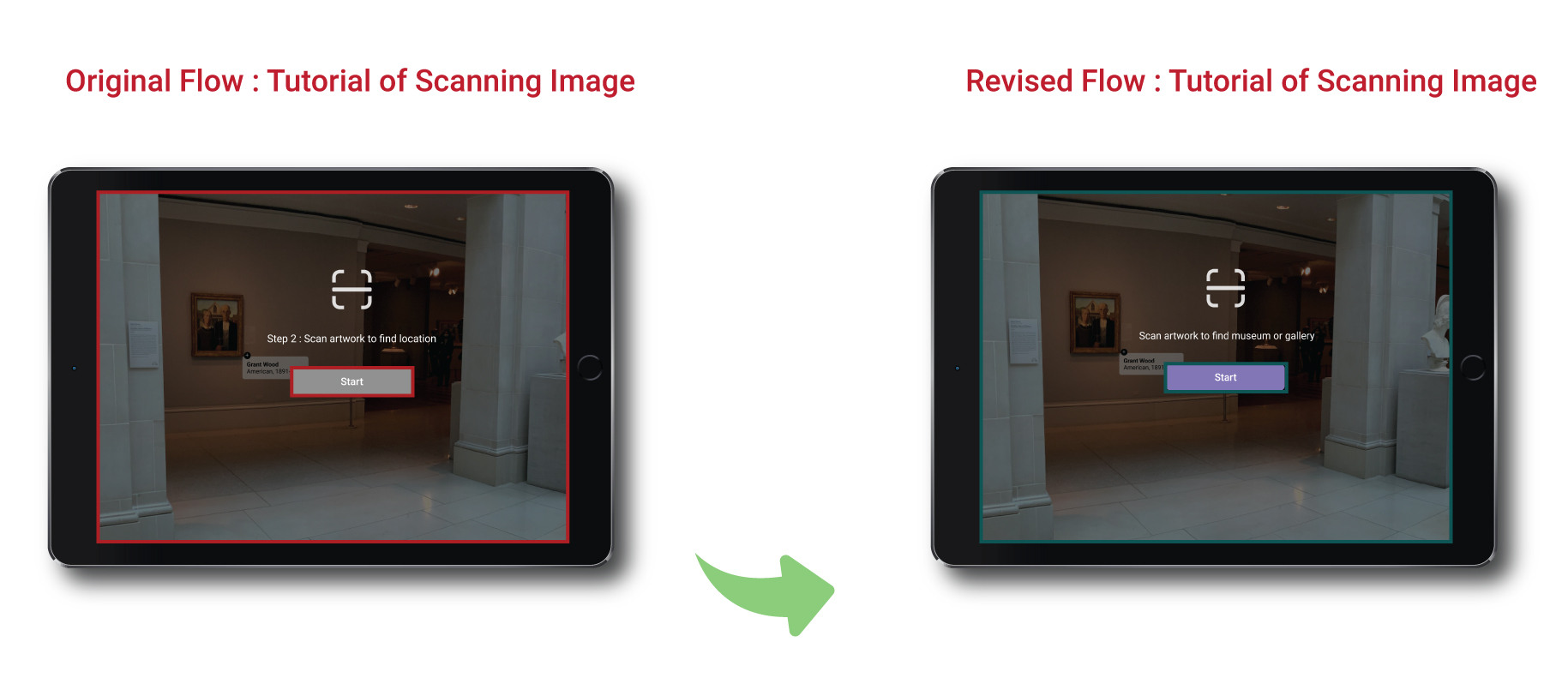 Angela’s journey would be entering the museum, walking to an interesting painting, and with her devices, she can scan it to learn or listen to more information about the artist.