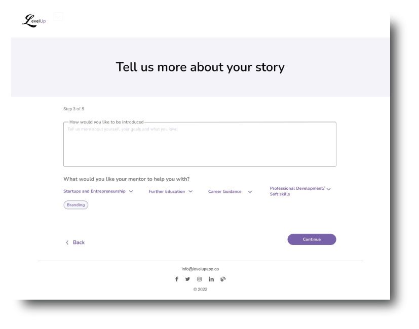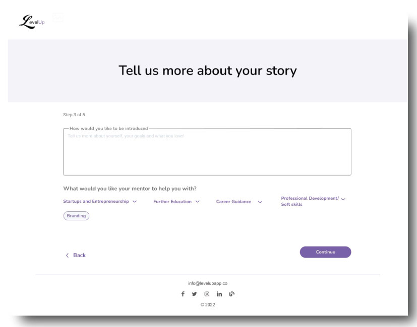 It began when I wanted to learn more about mentorship. We discovered that LevelUp was in the first stages of its iteration and had some existing research that they used to back up its flow. However, we wanted to do our own by conducting user interviews and reading articles to gain quantitative and qualitative data.