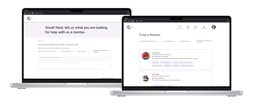 Level Up is a start up that connects women mentors & mentees using a streamlined matching approach based on role, industry, career interests & goals. Its mission is to help women to find a way to connect with and access mentors because they often struggle with sourcing leadership and guidance advice to accelerate their professional activities.