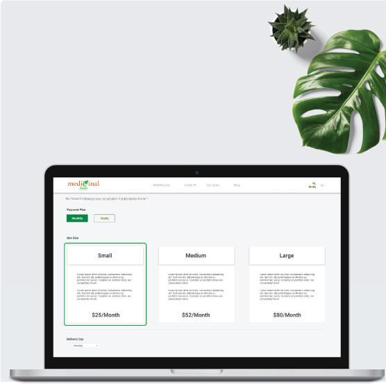 Medicinal foods provide a website where they want the user experience team to understand the market, gain insights about their target audience's goals, pain points, and needs, prototype, and test to ensure it meets their needs. In addition, medicinal foods wish for e-commerce that is easy to use with a few steps and an option to log in as a guest and change the subscription at any time.