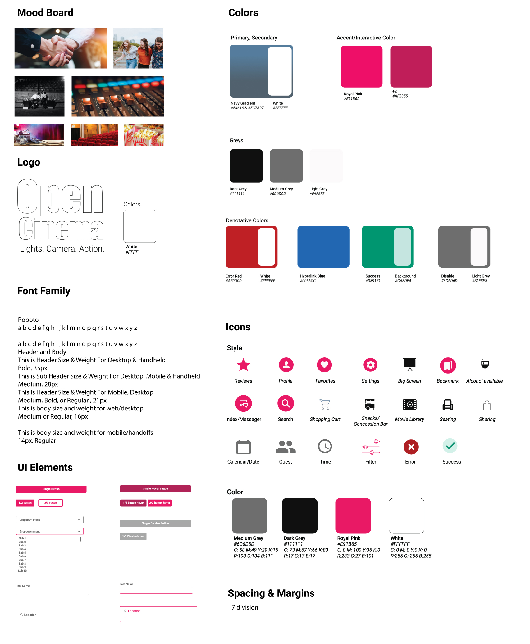 I developed a style guide using Google's material design component guidelines for reference. I choose primary colors that represent excitement and adventure.